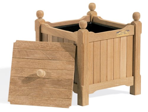 Made of weather resistant Shorea wood, Oxford Garden's Divot Box is long-lasting and durable and includes a removable liner. Turned finials and a matching lid provide elements of charm, adding beauty to its durability.