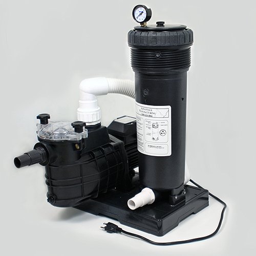 The Advantage cartridge filter system clearly is the best choice for all above ground pools. It features a revolutionary energy saving 1hp pump that can save 50% on electrical costs while providing excellent water clarity. The filter is easy to maintain with no tools necessary to clean the filter. Experience water quality that is much better than sand filters because of superior filtering. This professional system can be used with automatic pool cleaners and vacuums with whisper quiet operations. Everything needed to run your pump comes with the unit. 1hp pump, 50 sq ft filter with element, 2 six foot hoses, all fittings needed, hose clamps and 115 volt cord. You can buy with confidence with our award winning support and service via telephone or the web.
