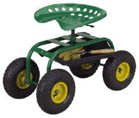 The Garden Seat Caddy is for the passionate gardener. Perfect for yard work when kneeling is uncomfortable due to arthritis or other disability and a seated position is needed. The light weight but very strong design of this garden seat caddy makes this a great addition to any gardener?s tools. The Garden Seat Caddy also features a handy tray below the seat for keeping all your hand garden tools within easy reach. This caddy includes rubber tires with metal wheels, not the plastic ones the competitors use.Garden Seat Caddy Features:Heavy Duty steel frame. Weather resistant powder coated finish.Big 10" pneumatic tires.300lb. weight capacity.Swivel seat with adjustable height: 17 to 22 inches high.Tray dimensions: 17" L x 15-1/2" W x 3" D.Overall dimensions: 33" L x 16" W x 22" H.Weight: 30 lbs.