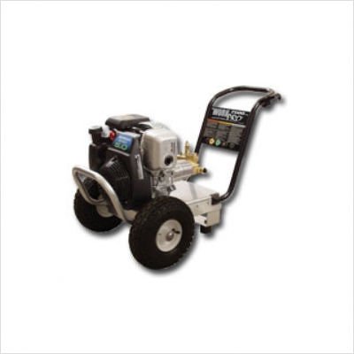 MI-T-M Commercial Gas Cold Water Pressure Washer is specially designed to handle your toughest cleaning jobs.Direct drive axial pump with solid ceramic plungers and ceramic coated pistons combines with professional grade trigger gun to deliver powerful spray. 3/16" thick solid-steel base plates limit vibration. Low pressure detergent injection. 3/8" dia.x25' wire braided pressure hose. Includes threaded hose nozzles (15°, 25°, and detergent).