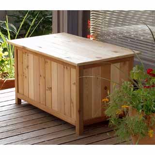 Keep your backyard, garden and patio looking neat and tidy with this helpful and beautiful outdoor storage box. Constructed of insect and weather resistant western red cedar, this storage bench will help you to keep all your garden tools, pool equipment or any other outdoor supplies protected, hidden and organized. Store all outdoor tools in this hinged deck storage box so you don't have to run around the rest of your house looking for what you need. This patio storage bench also provides you with extra seating during summer dinner parties or a place for you to sit and relax while enjoying your backyard or garden. This amazing storage box will help to keep your outdoors clean and tidy while adding style and elegance to it. Dimensions: Exterior: 19"H x 35"W x 20 1/2"D Interior: 14 1/2"H x 29 5/8"W x 15 58/"D . Made in America