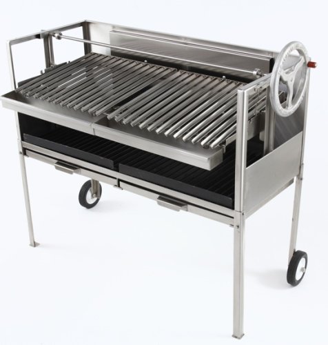 The Grillworks is a wood-fired stainless steel grill with 16" of vertical adjustment and a patented juice-catching cooking system. Used in four-star restaurants and vacation homes alike, this grill will impress for a lifetime. New! Check out Steven Raichlen using The Grillworks on YouTube by searching on "Raichlen Grillworks".